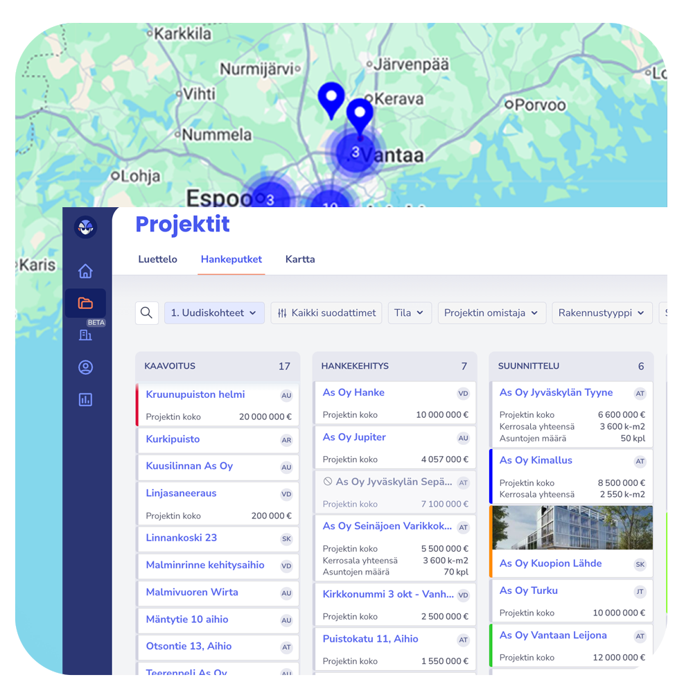 Builderhead auttaa kehittäjiä, rakennuttajia ja omistajia pitämään hankkeet hallinnassa varhaisesta aihiovaiheesta aina luovutukseen asti.